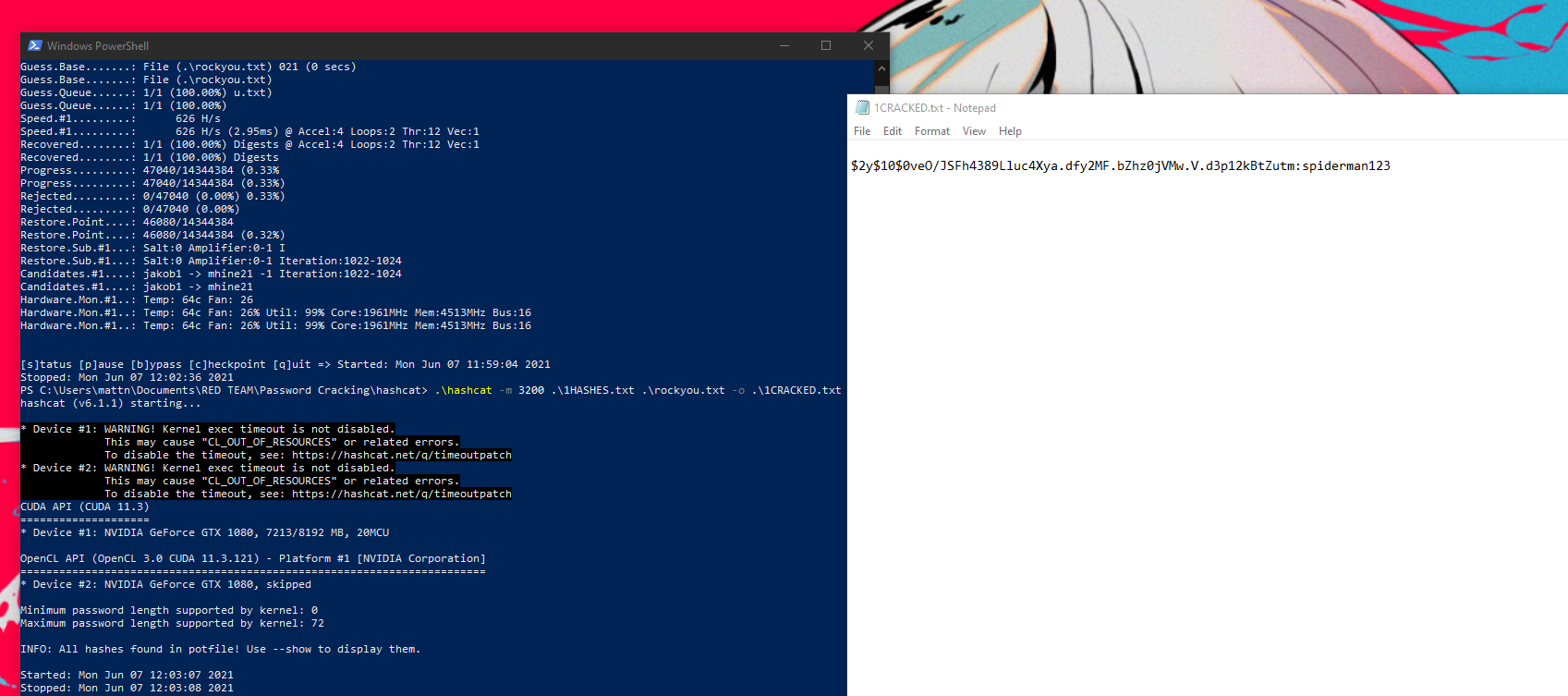 I am able to take the hash for the user and run it through hashcat and generate the user password.