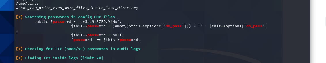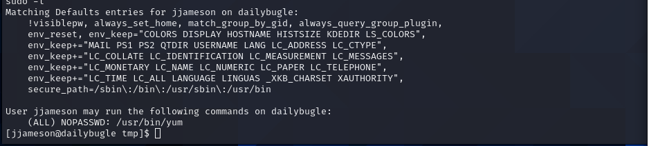 After running the linpeas enumeration script I found that there is a password stored in plaintext in a configuration file. This password is associated with the user "jjameson". I use these to login to his account and work on further escalating my privileges on the machine.