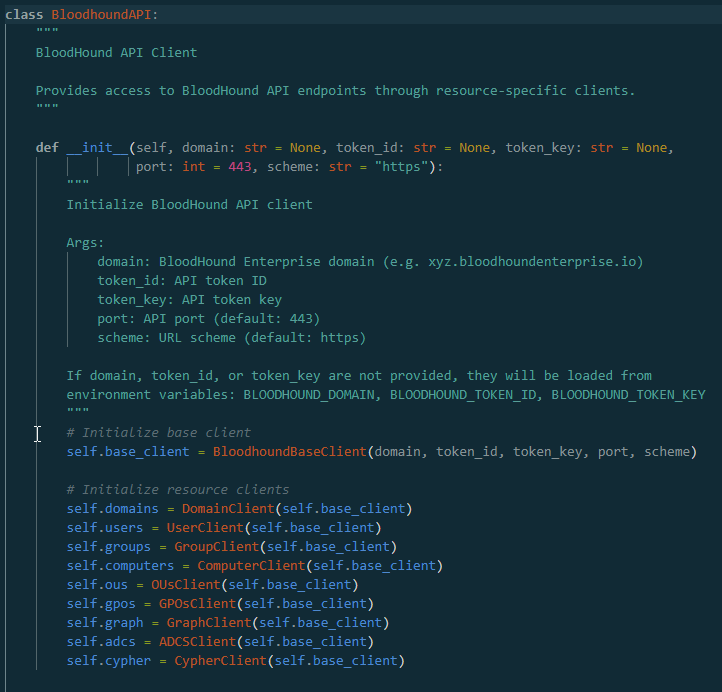 The client I built mirrors the BloodHound’s own organization, with the main BloodhoundAPI